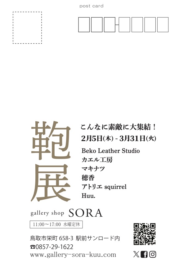 電話; 0857-29-1622(ギャラリーそら)